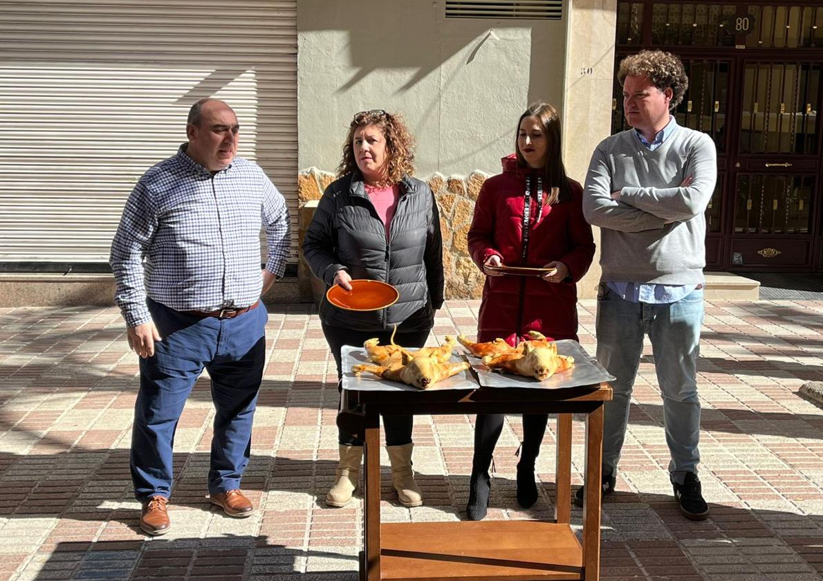 En la foto: Curro Marín, Nani García, Mar García y Bubi Morenodávila, dan el pistoletazo de salida a las jornadas, cortando el cochinillo al estilo tradicional, con el plato que termina roto sobre el pavimento de la Carretera de la Sierra.