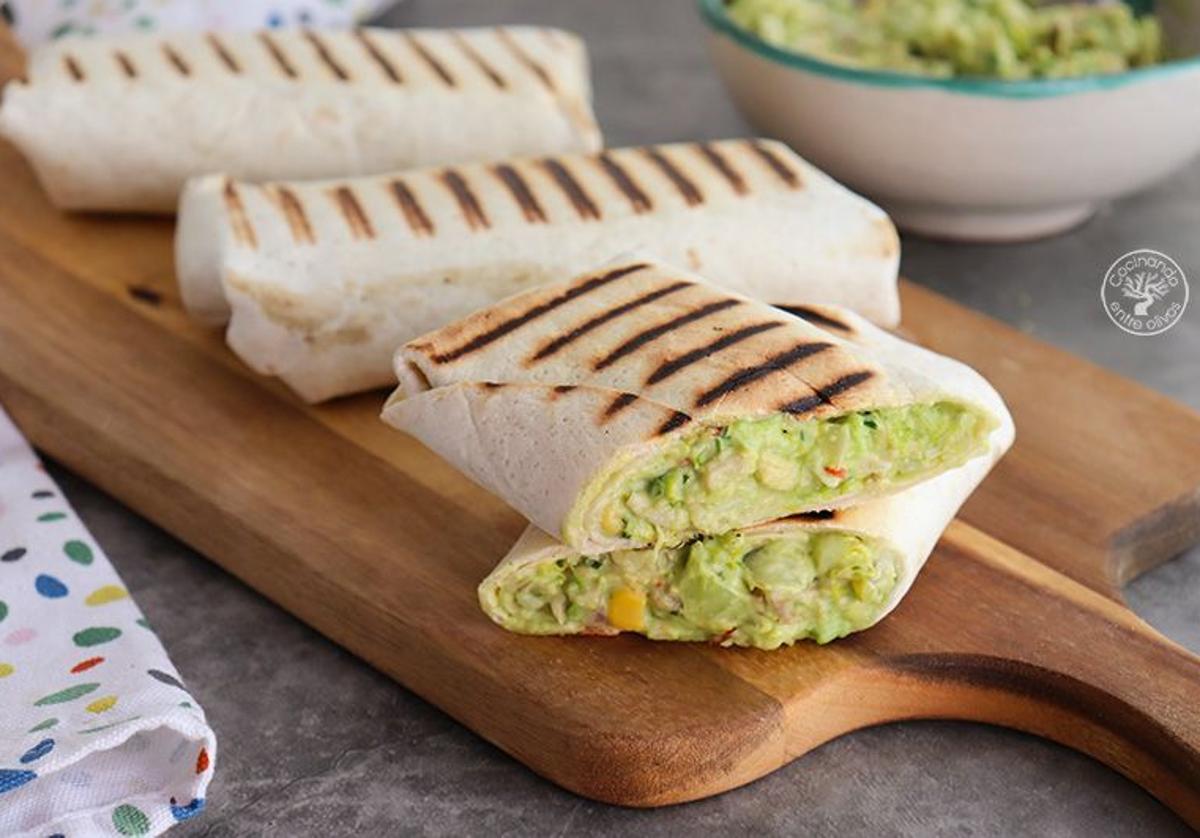 Burritos de pollo con aguacate, chile y maíz