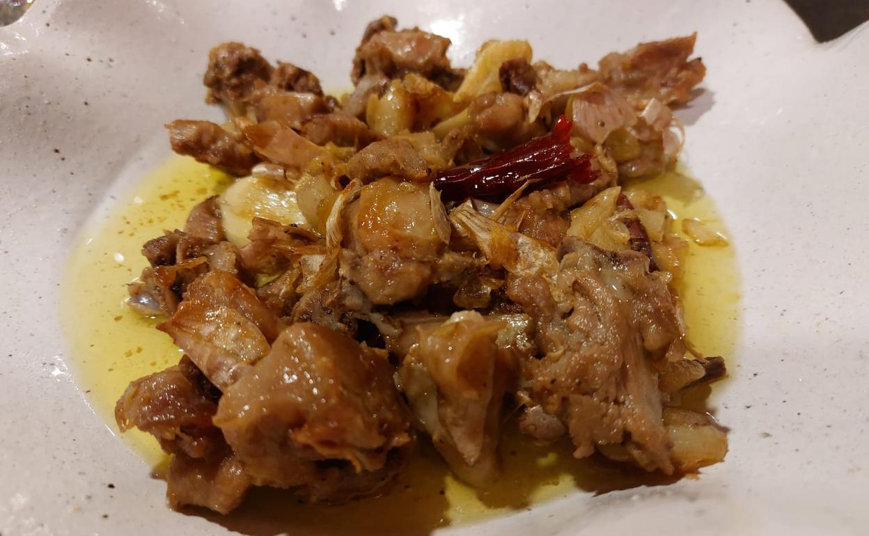 En Flati, un restorán de Loja donde les va, como a VOX, el producto autóctono, cocinan uno de campeonato. El chivo es local, de la sierra lojeña, dicen, y lo sirven de forma recia, sin arreglos y con la única compañía de los ajos, que van desnudos o con canesú, dos dedos de buen aceite de oliva y las guindillitas, que rematan un bodegón que podría ser una pinturita de Sánchez Cotán. La ración está bien para salir vivo, unos 300 gramos, y se recomienda bajar con vino para regular el PH de un organismo al que mecerá esa suave brisa de ajo que es ideal para arrestos domiciliarios.