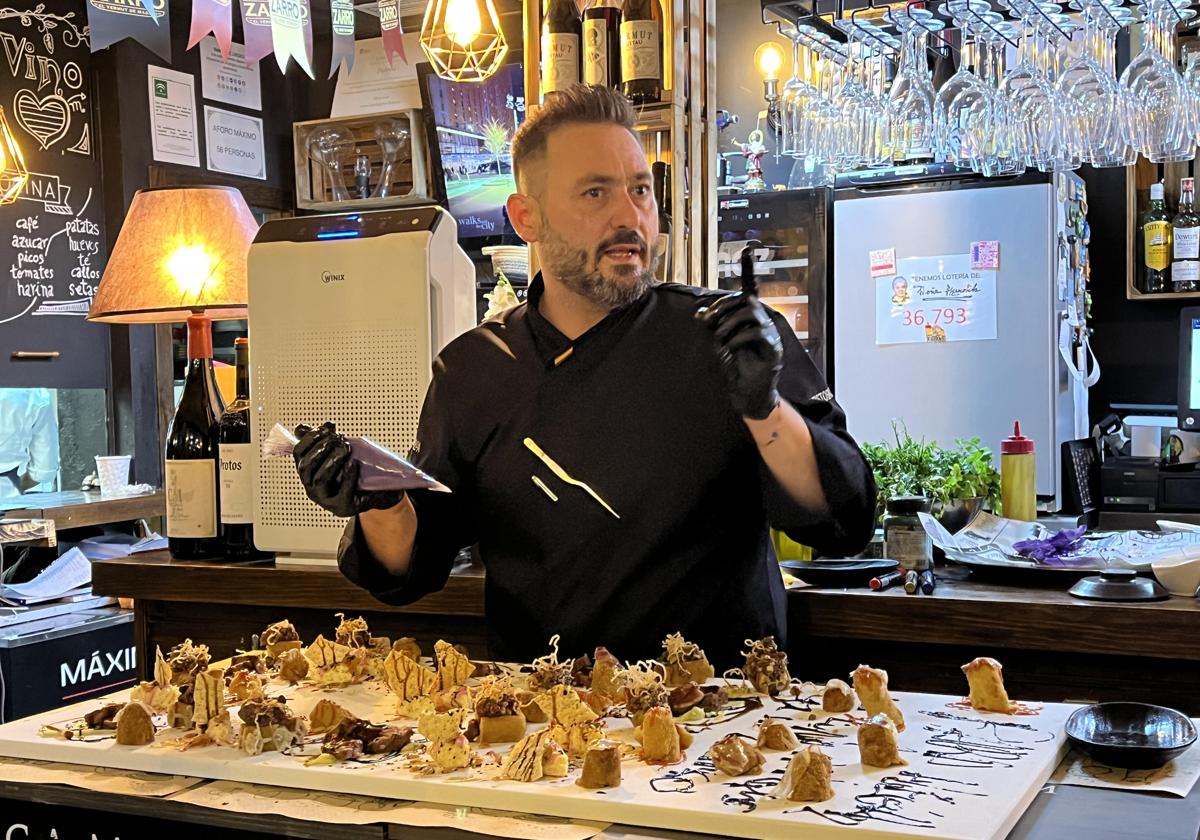 Cristóbal, que echó los dientes en la cocina del negocio familiar, se hizo famoso cuando llegó a la final de una de las primeras ediciones de Masterchef. Desde entonces no ha parado de moverse. Es nervioso, curioso e inquisitivo y, tras una memorable cata maridada a comienzos de verano, se ha establecido en La Chulapa de forma permanente, haciendo un estupendo tándem con Ángel Vargas, otro tipo incansable que, para celebrar la nueva temporada, ha colgado en las paredes una selección de los atractivos cuadros cubistas del artista Willy L'Eplattenier.