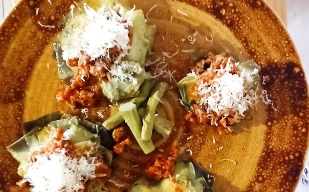 El chef Paco Rico sugiere para dejar atrás los excesos de las fiestas unas alcachofas abiertas a la brasa con tartar de gamba blanca. Si bien lo ideal es emplear esta verdura en fresco, si no es temporada se pueden utilizar en conserva de aceite. En cuanto a las gambas blancas, deben estar previamente congeladas para evitar anisakis, y se deben pelar y trocear previamente en tamaño muy pequeño. «Un plato ligero y muy sabroso para comer fresco», asegura Arquelladas.