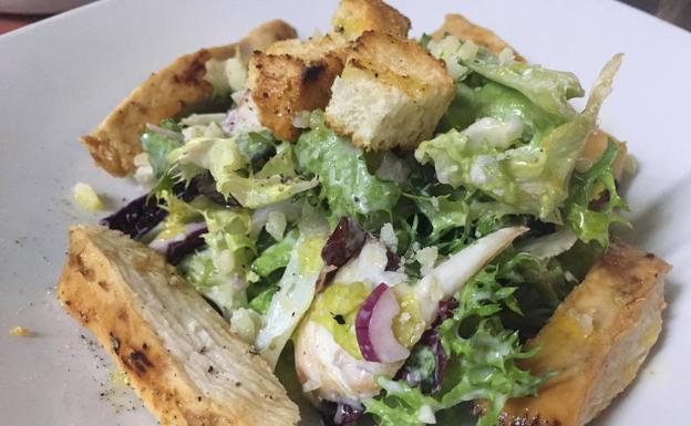 Recién inaugurado, este bar canario, ofrece un menú con platos del recetario de las islas. En este caso una ensalada César con coliflor, col lombarda, mix de lechuga, yogur, pollo y croutons de pan. Precio del plato 7 euros.