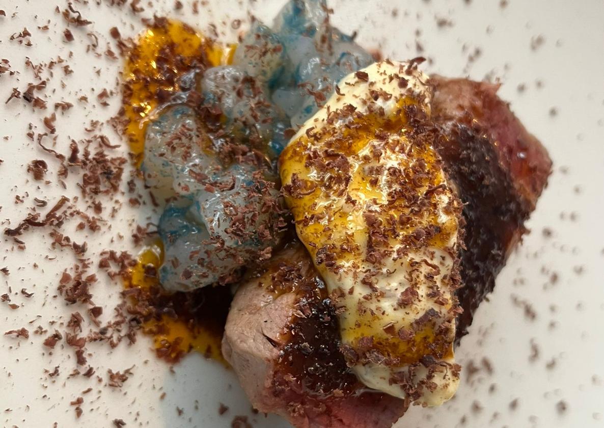 Los guiños a la cocina local incluyeron unas quisquillas de Motril maceradas con sus huevas que estaban como para llevárselas a casa y ponerlas en exposición, el tártaro de solomillo de vaca pajuna madurada y emulsionada en su grasa y, atención a otro de los platos estrella: solomillo de vaca pajuna, quisquilla de Motril y holandesa de corazón de atún que hacía precisamente eso: robarte la patata que todos llevamos en el pecho de lo bueno que está.