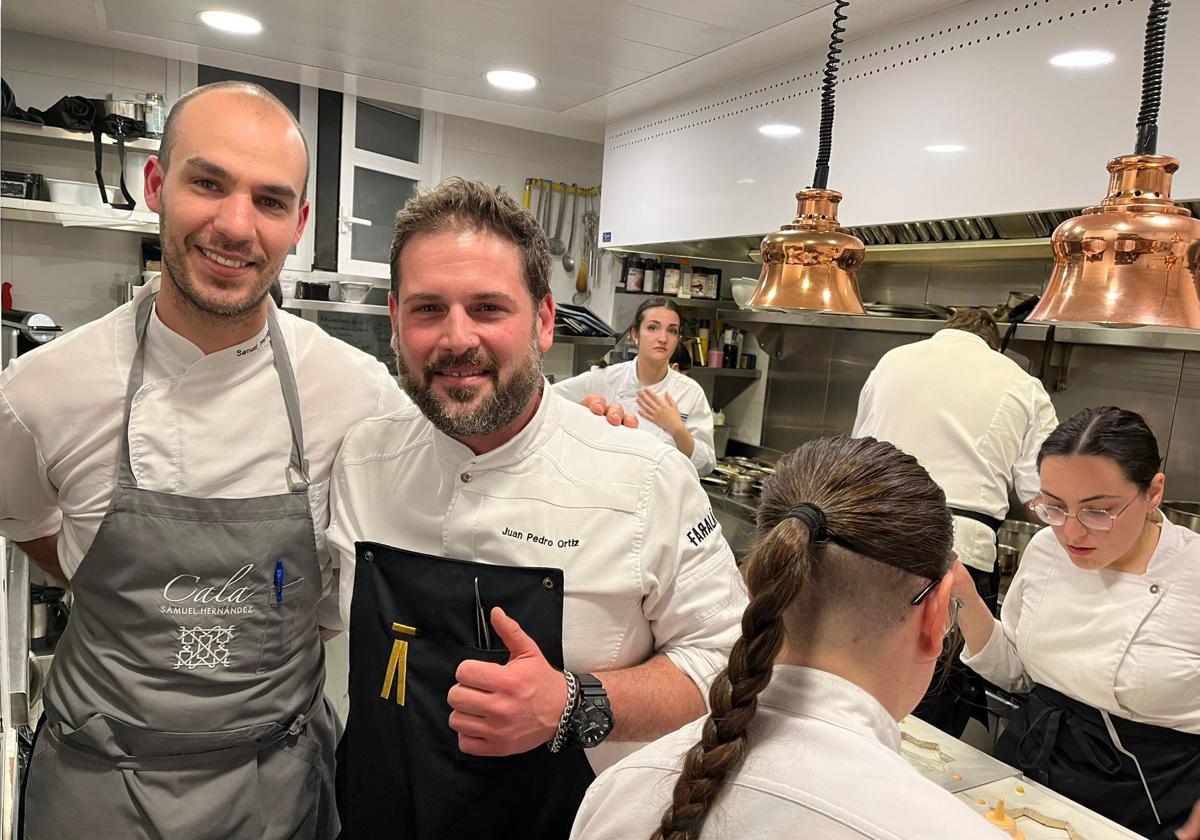 De poder a poder. Así fue el mano a mano que se marcaron en el restaurante Faralá Juan Pedro Ortiz, el cocinero local reconocido hace ... unas semanas con el Sol Repsol, y Samuel Hernández, el chef de Restaurante Cala, recomendado por la guía Michelin y otro de los jóvenes agitadores de la nueva gastronomía granadina.