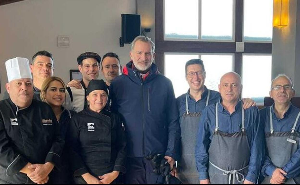 Su mesa de cinco personas, compuesta por un matrimonio amigo, con su hijo, y otra amistad. Pidieron de la carta y el Rey Felipe VI pagó la cuenta de su mesa, dejando hasta una coherente propina. Manuel Martín (Lolo), jefe de cocina del equipo de Cetursa y el resto de empleados desconocían para quién era la reserva de mesa hasta que vieron llegar al Rey. No había nada especial preparado.