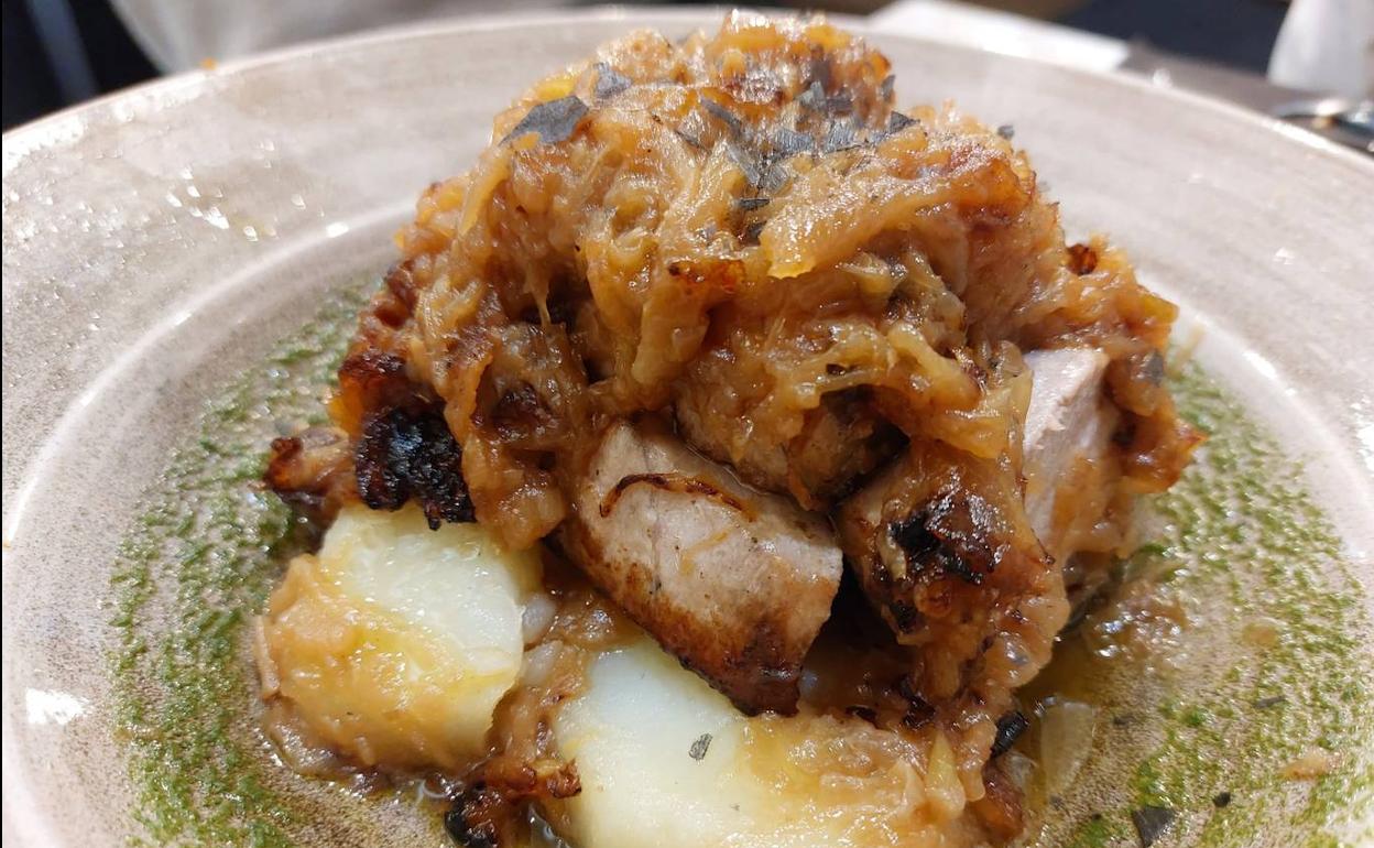 Ingredientes principales Atú rojo, cebollas, AOVE, ajos, perejil y pimienta.