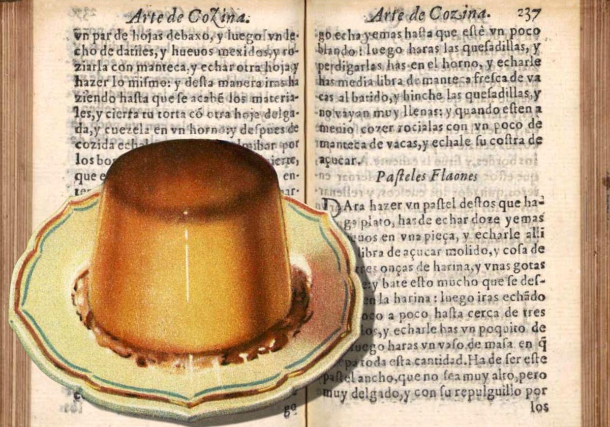Mientras que una parte de los flaones siguieron fieles a su espíritu medieval, otros muchos evolucionaron convirtiéndose en una tarta de base crujiente rellena de crema y después, poco a poco, fueron desprendiéndose de la parte rígida para centrarse únicamente en el relleno de leche y huevo. Para darle estructura aún hacía falta un poco de harina, y así en 1611 nos encontramos con que el cocinero del rey Felipe III, Francisco Martínez Montiño, enseñó en su libro 'Arte de cozina' (sic) a hacer flaones de varias maneras según la vieja y nueva usanza. Sus «pasteles flaones» llevaban yemas de huevo, azúcar, leche y un poco de harina cuajados en una masa precocida, mientras que los «otros flaones» usaban la misma fórmula pero sin base de masa, y se cocían dentro de un molde aplicando calor arriba y abajo.