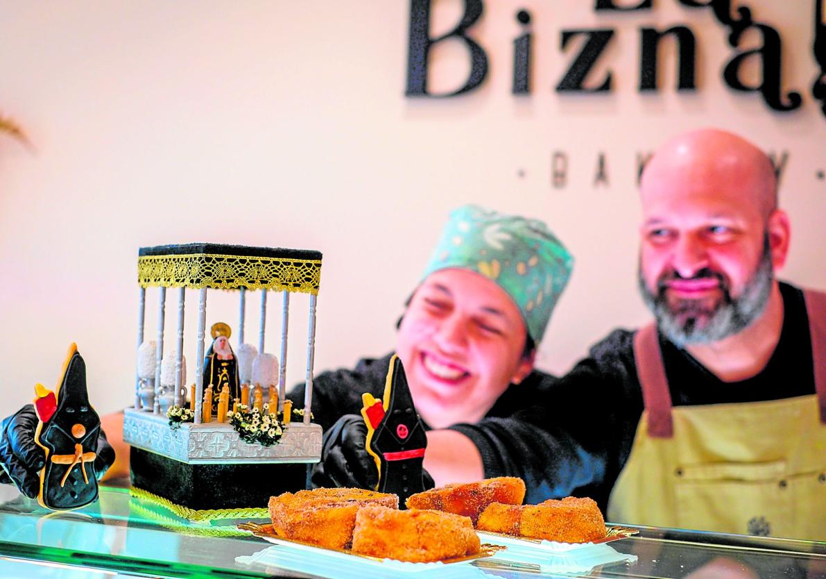 La inspiración para elaborar estas galletas surgió tras ver algo similar en una panadería de Málaga, una ciudad a la que ambos emprendedores están también muy ligados, pero «eran una especie de pastelitos de hojaldre con forma de penitente», dice Eva. Una idea que adaptó a sus propias galletas decoradas para la 'BBC' –como se denomina en la jerga al segmento de bodas, bautizos y comuniones, remedando a la cadena radiotelevisiva británica–, «pero orientadas ahora a la Semana Santa».