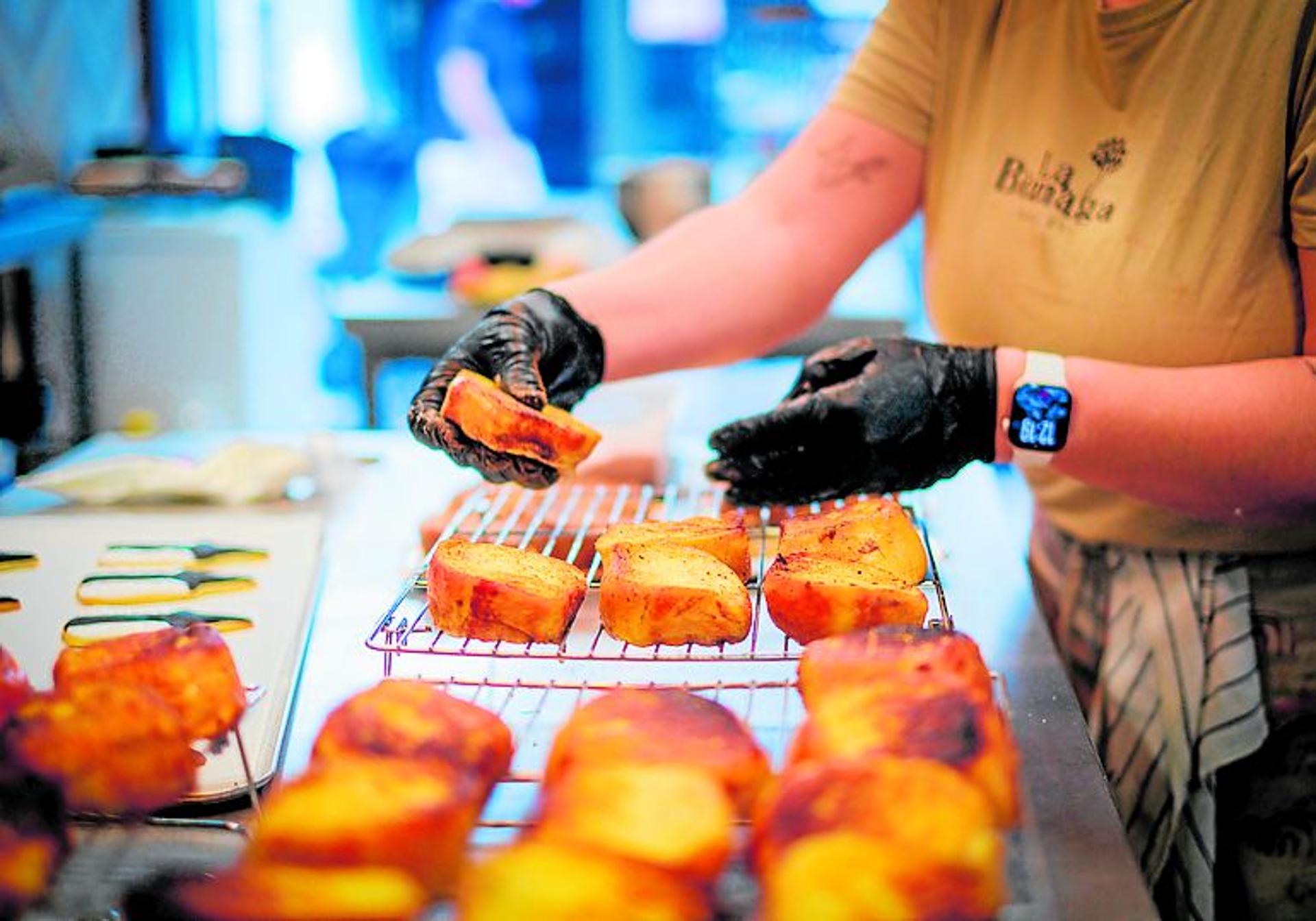 Aunque estas galletas son sin dudas la estrella de su oferta para estas fechas, la panadería situada en la céntrica calle Trinidad de Almuñécar tiene también otras propuestas tradicionales como las torrijas, que preparan con el pan brioche que ellos mismos elaboran, aunque de una forma diferente a la habitual. «No las freímos, las pasamos simplemente por mantequilla en la sartén como si fuera una tostada francesa para que no se pierda la suavidad del brioche», detalla la pastelera. Se puede optar por la torrija clásica, que solo lleva azúcar y canela, o con crema pastelera tostada, que se quema con un quemador y es de mayor tamaño, para compartir.