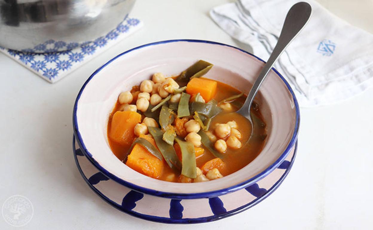 Garbanzos con calabaza y judías verdes