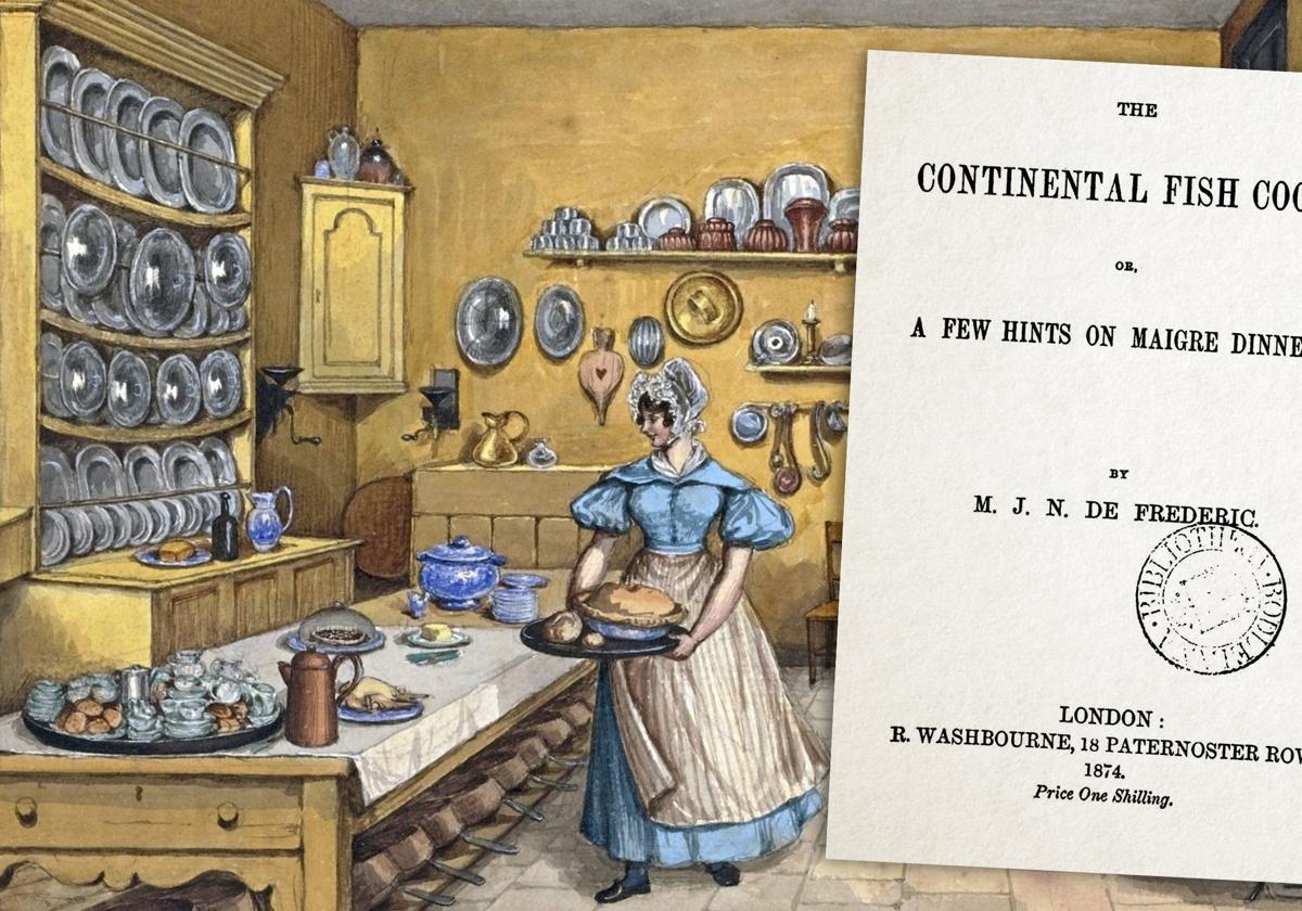 'The Continental Fish Cook' (La cocinera continental de pescado) vio la luz en 1874 en una editorial londinense, la de Robert Washbourne, dedicada a libros de índole religiosa y concretamente católica. Pensemos que los anglicanos no observan ayuno ni abstención de carnes durante la cuaresma, así que en Inglaterra no existía el amplio recetario popular de recetas de vigilia —a base de pescado y verduras— que sí había en países católicos como España. Quienes siguieran en Gran Bretaña los postulados de Roma o quisieran abstenerse en ciertas ocasiones de comer carne (como hacían algunos protestantes) no tenían muchas recetas a su disposición y solían buscar inspiración, si podían, en la gastronomía del continente. De ahí ese continental del título, que se refiere al estilo culinario europeo en contraposición al insular británico.