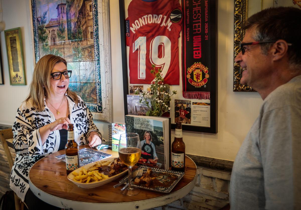 Es historiadora del arte y miembro de la Academia Andaluza de Gastronomía y Turismo y acaba de recorrer todos y cada uno de los 97 ... municipios de Jaén de la mano de Degusta Jaén, una iniciativa de la Diputación encaminada a dar a conocer y difundir sus productos alimentarios, a sus productores, las tiendas que los venden y los restaurantes que los cocinan. Su prestigioso blog gastronómico, 'Cocinando entre olivos', es uno de los más seguidos en Andalucía y en este suplemento tenemos la suerte de contar todas las semanas con una de sus recetas. Nos citamos en el Mesón San Cayetano de Churriana de la Vega, donde probamos sus exquisitas berenjenas fritas y un excepcional rabo de toro.
