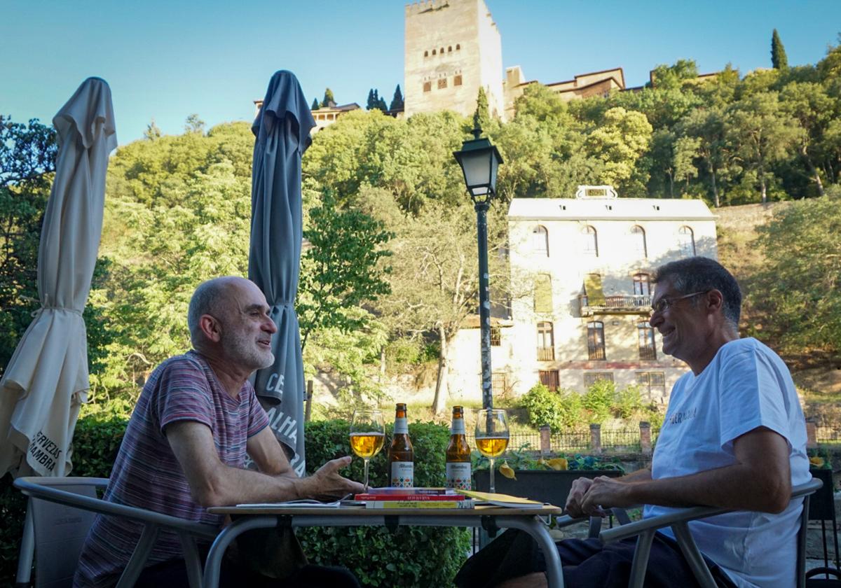 Quedamos a la caída de la tarde en Ruta de Azafrán. Quiero que el dibujante Joaquín López Cruces se sienta como en casa y la ... terraza del restaurante en el Paseo de los Tristes ofrece unas vistas muy parecidas a las de su hogar, donde disfrutamos hace unas semanas del showcase de Sofía Comas. Bajo la atenta vigilancia de la Alhambra, Joaquín muestra algunos de sus fascinantes cuadernos de viajes, auténticas obras de arte.De ahí sale 'Bajo un rayito de sol', el libro de apuntes playeros que, publicado por Libros de Autoengaño en edición limitada, se presenta el martes 18 de julio en el Botánico, ese café que aúna cultura y gastronomía.