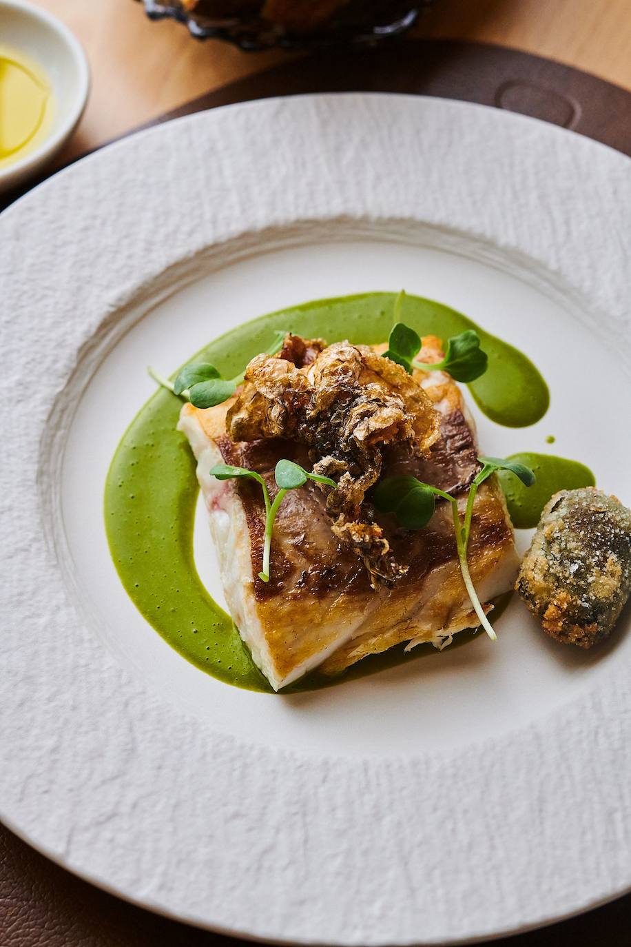 La 'Trucha con Piel de Torrezno' en la sección de pescados o la 'Costilla de Vaca Especiada, Apionabo y Piña a la Parrilla', en la de carnes, son suculencias gastronómicas que sólo puede ofrecer un chef como Chechu González en María de la O.
