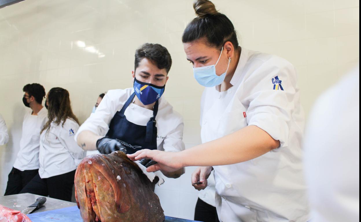 Con Cañabota, el alumnado ha podido conocer de primera mano lo que es el despiece íntegro de un pescado como el mero, la calidad del corte, el aprovechamiento de la pieza y su cocina y preparación. «Cada restaurante prepara el pescado de diferente manera y todas son válidas. Nosotros en Cañabota realizamos varios platos con las piezas del pescado, y también hemos mostrado a los alumnos cómo realizar una preparación con pescado frito, porque creemos que una buena fritura de pescado es difícil de conseguir», explicó Juan Luis Fernández, co–propietario y jefe de sala de Cañabota, que ha puesto en valor la cocina andaluza.