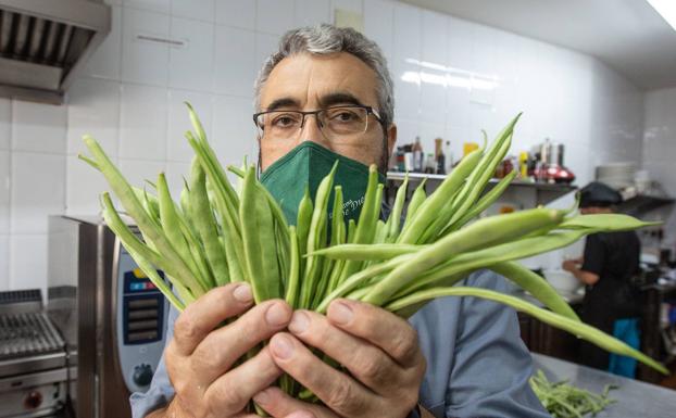 El menú de La Cantina de Diego continúa con una Ensalada de habichuelas lacias con caballa y mahonesa de yema antigua. Ahora es el momento de disfrutar de una modalidad de judía verde especialmente tierna y jugosa, propia de la vega de Monachil, que está de plena de temporada. Una judía que crece al calor del final del verano y gracias a las aguas de Sierra Nevada y que se convierte en exquisitez gastronómica habitual en la carta de La Cantina de Diego, que la sigue manteniendo dado que todavía está en producción. Acompañada de caballa, la mahonesa termina de darle una textura y un sabor excelentes. Es un plato con coherencia que no le quita el pro tagonismo a la habichuela. Eso sí: si una helada terminara con las judías, este plato se sustituiría por unas setas clásicas de la casa.