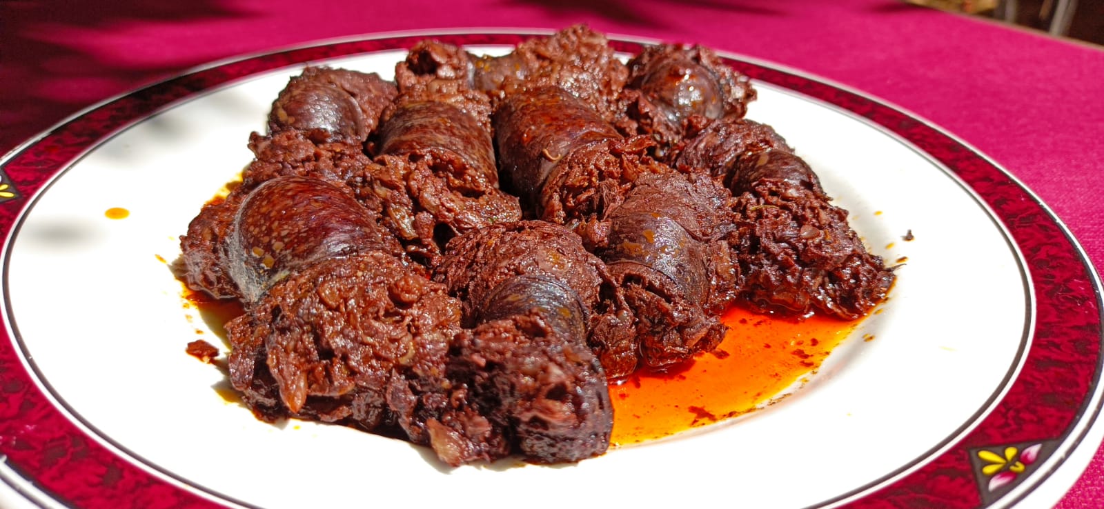 La ración cuesta 10,50 euros y uno puede apretarse una siempre y cuando no se entere la Organización Mundial de la Salud. El embutido, cocinado, para más señas, chorrea que da gusto y luego pide más agua que el perro de Kipchoge. Cada trozo que uno come es mejor que el anterior. El problema es que después vienen los 'madres mías' y las excusitas para no hacerse el chequeo médico del curro. Ya saben cómo es esto, de viejo la morcilla sube el colesterol y además engorda. ¡Qué putada! Pero tampoco se obsesionen mucho con esto último. Recuerden aquello de Craso en Espartaco, cuando le dice a su colega de baño termal, no sin razón, que la gordura lo hace a uno «razonable». Sea así o no, no nos interesa contradecirle.