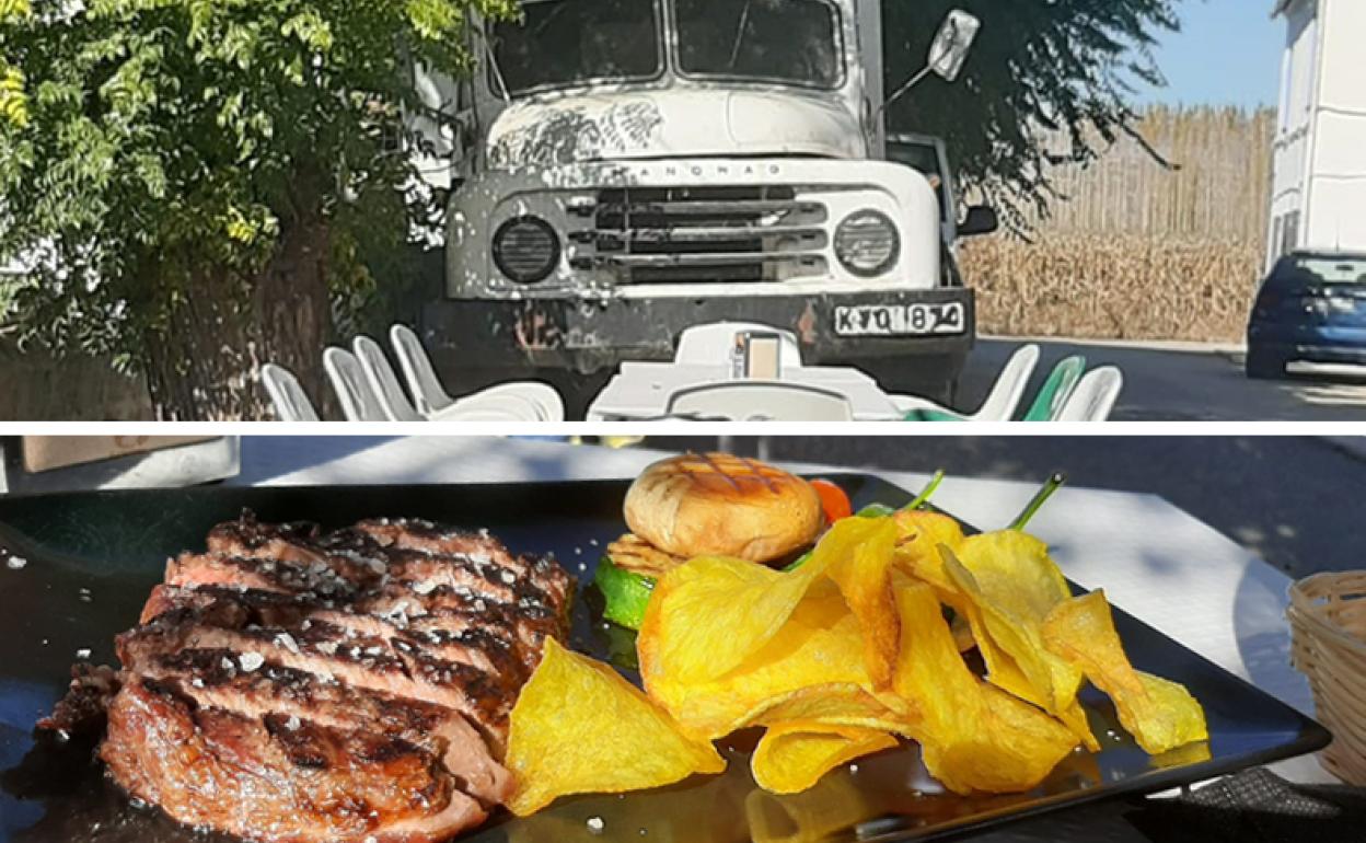 Nos separaban una, dos y tres mesas, llenas todas de gente normal en busca de una razón para vivir en domingo. Lo mismo eran unas patatas bien fritas, que una cerveza helada o las únicas risas de una semana de mierda. El filete venía bien servido, tendrás que reconocérmelo. Era un lomo alto, poco hecho y que estaba sellado como Dios manda: vuelta y vuelta, como se llama ahora tu linda morada; inesperada posada del buen gusto, la sencillez y el trato amable. Rodeado de campo, de interior acogedor y precio accesible, qué buen retiro te has buscado, camión de triste figura, para orillar las últimas noches de tu vida.