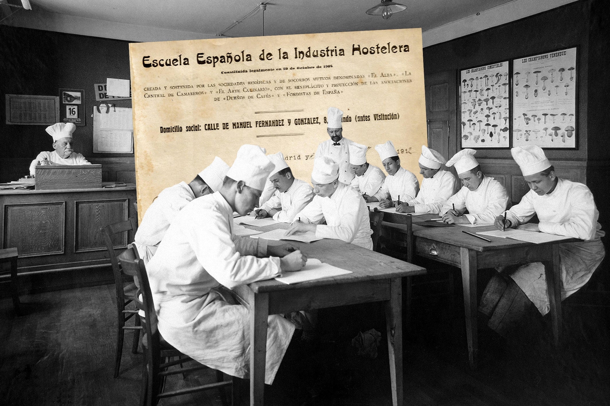 Este es sólo un ejemplo de la magnífica labor que hizo la EEIH entre 1908 y 1919, período en el que estuvo operativa esta pionera institución de enseñanza. Por entonces solo existían dos iniciativas análogas, la École Hôtelière de Lausana (Suiza, 1893) y una escuela para camareros y hoteleros en Alemania (Breslau, actual Polonia). La cosa estaba tan difícil que la Escuela Profesional de Cocina y Ciencias Alimentarias, abierta en 1891 en París y en la que había sido profesor el celebérrimo chef Auguste Escoffier, había cerrado tras poco más de un año por falta de subvenciones públicas. En 1907, con España convertida ya en un incipiente destino turístico, se celebra la primera Asamblea Nacional de Fondistas con un punto importante en la orden del día: estudiar la posible apertura de una «escuela práctica del fondista donde se dé enseñanza completa de cuanto a esta industria se refiere».