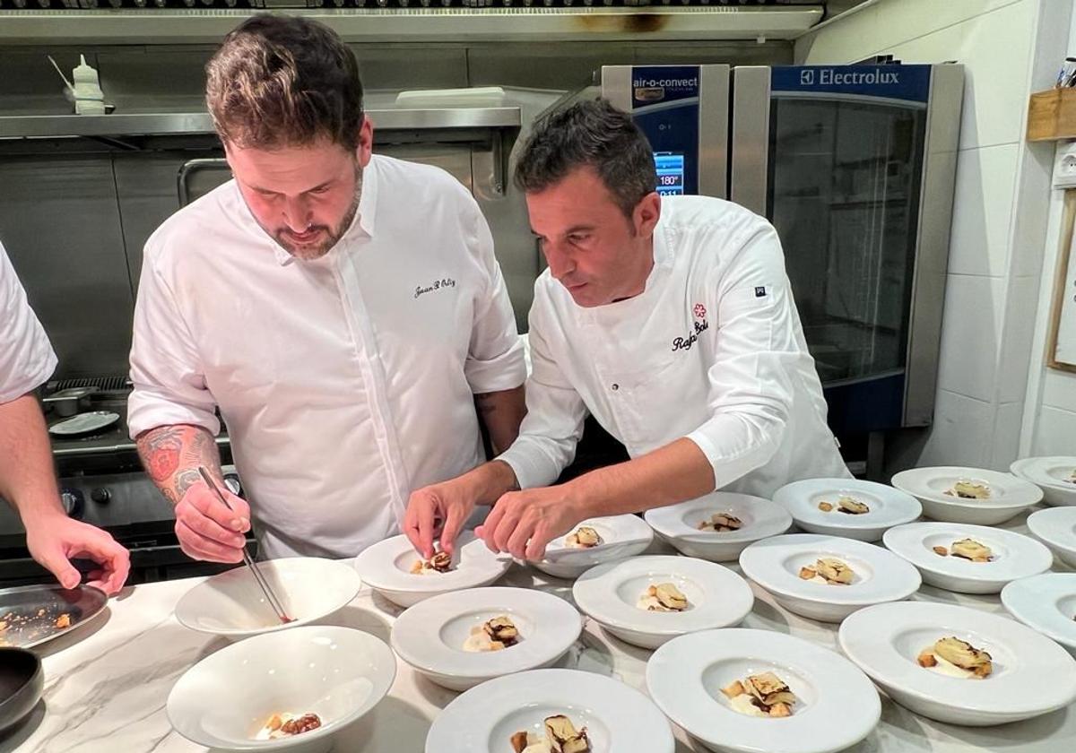Le preguntamos a Juan Pedro Ortiz por el balance de este año 2023 desde la óptica de estos encuentros y menús a cuatro manos y esto es lo que nos dice, comenzando por el remate: «Para mí, la presencia de Rafa Soler ha sido la mejor manera de cerrar al año en cuanto a jornadas gastronómicas se refiere. El trabajo mano a mano con él ha sido muy bonito desde que empezamos a preparar el evento hasta su ejecución, que salió todo a pedir de boca, con un menú redondo que la gente disfrutó a lo grande. Es un gran profesional y, además, muy buena gente».