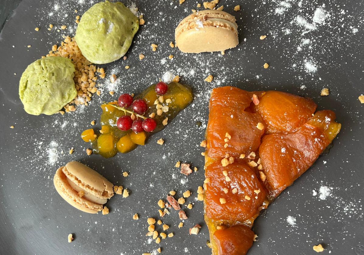 Y con un Pajerete de Málaga entramos en el terreno de los postres. El corte de helado de chirimoya nos permitió brindar de una manera diferente y original y el helado de aguacate es una locura, además de la tarta tatín de níspora.