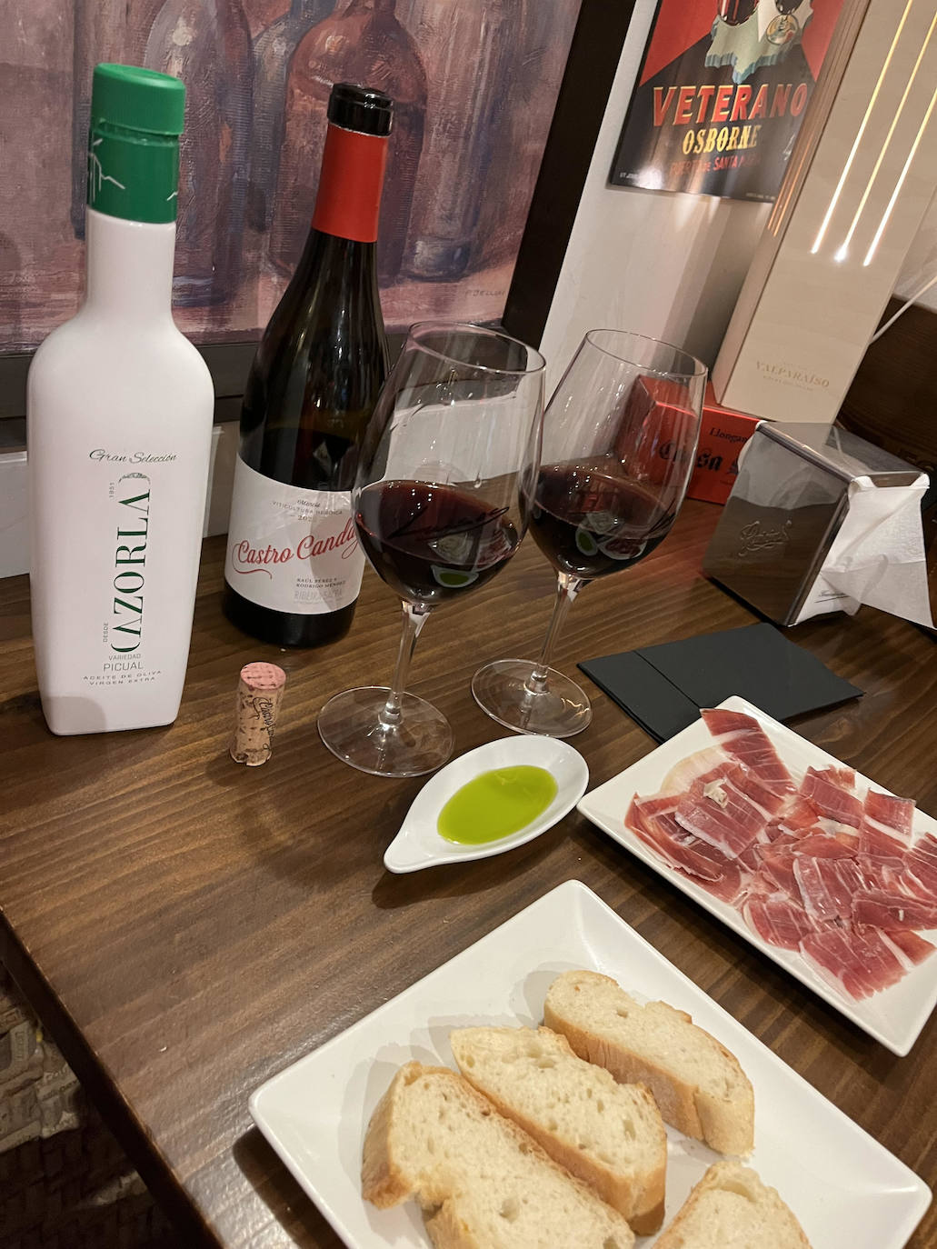 En la mesa apareció un Castro Candaz 2020. Se trata de un tinto gallego de la Ribeira Sacra hecho con Mencía. Un proyecto de Raúl Pérez y Rodrigo Méndez que representa esa viticultura heroica en la que todo es manual y artesanal. Charlando de cine, vinos y música disfrutamos de algunas de las delicatesen de la casa, como el sushi de ibérico, una gozada, algunos embutidos selectos, jamón o una exquisita degustación de aceite picual Cazorla. El remate, una sidra de hielo, Valverán 20 manzanas. Salimos haciendo palmas con las orejas.