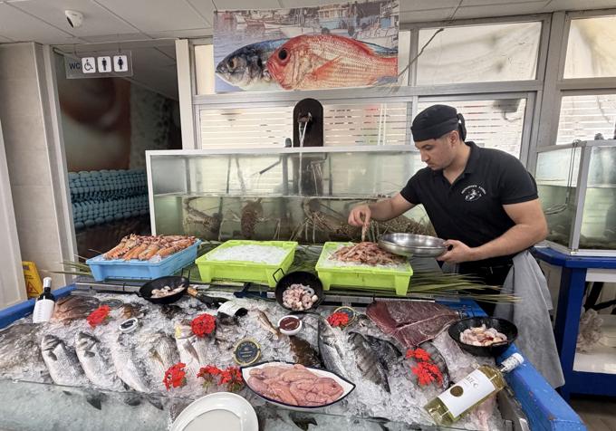 Si queremos probar un surtido de productos del mar, Bakraoui recomienda la parrillada de pescado y marisco, «una variedad de productos del día a la plancha como pescadilla, brótola, salmonete, calamares, quisquilla, cigalas, mejillones y concha fina. Una vez emplatado se le añade aceite de oliva, ajo y perejil, y se acompaña con limón y ali oli», indica.
