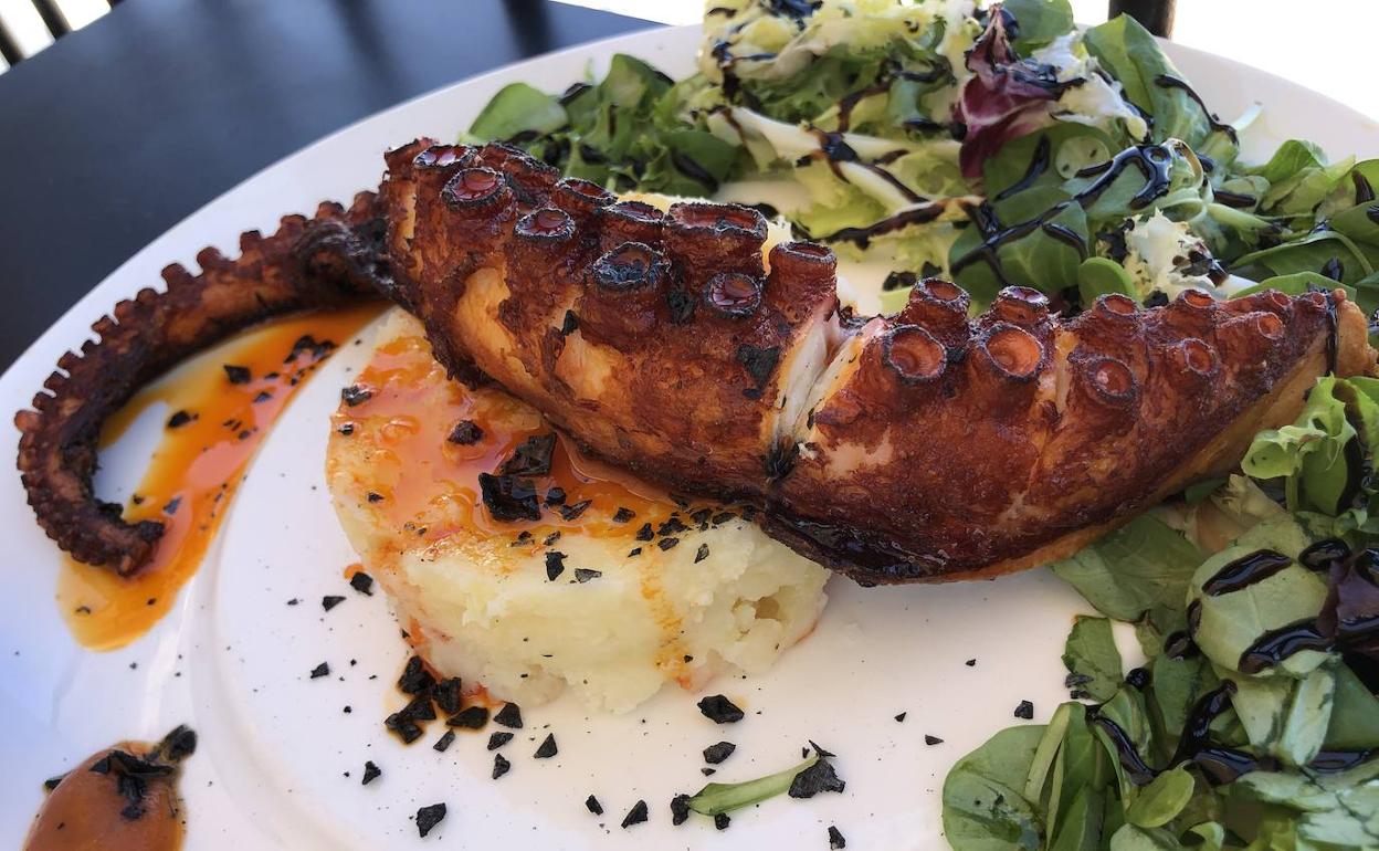 Desayunarse con un salmorejo no es una descabellada opción, sobre todo cuando hace calor. O con un milhojas de berenjena. Pero lo que más me animó a olvidar la tostada de jamón por un día fue que tenían el famoso pulpo a la salobreñera que me había quedado sin probar la víspera. Hace unas semanas, Conchi Pérez Martín, de El Campano, le explicaba a nuestro compañero Sergio Sebastiani cómo se prepara una receta que, poco a poco, va conociendo diversas reinterpretaciones: troceas el pulpo y lo «echas en una sartén grande con bastante aceite de oliva. Se cuece con él y con la misma agua que suelta durante una hora y media, y cuando ya está tierno se le agrega el aliño, que consiste en ajo, orégano, guindilla, pimentón y vinagre». Para que el plato esté listo para servir «tiene que hervir unos minutillos, pero poco, porque si no el aliño pierde su aroma». Aclara que no es necesario añadirle sal, ya que de por sí «el pulpo es bastante salado».
