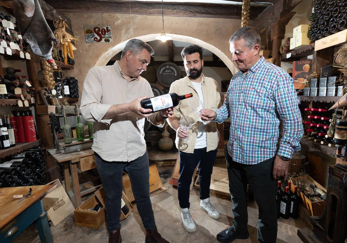 Al final de la barra, unos grandes toneles de vino separan los espacios. Da la sensación de que allí termina Casa Enrique, pero es una falsa ilusión. Porque dos pasos más allá se abre otro espacio más amplio y diáfano, un salón con mesas bajas y taburetes en cuyas paredes cuelgan cuadros de pintores tan reputados como Jesús Conde y osadas intervenciones artísticas de Pedro Moya. Al fondo, otra pequeña barra y, rodeada de botellas de vino y decantadores, una impresionante caja registradora de cobre bruñido. «Nos la han querido comprar muchas veces, pero no se vende», explican Montes y Gómez. Y una pieza maravillosa: una pizarra en la que el inolvidable Martínmorales dedica uno de sus 'monigotes' a su amigo Enrique.