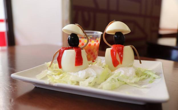 En la entrada desde la plaza del Ayuntamiento, esta tasca de elementos sencillos donde la creatividad acompaña. Muestra de ello, estos huevos obispos. Precio de la tapa incluido en la consumición.