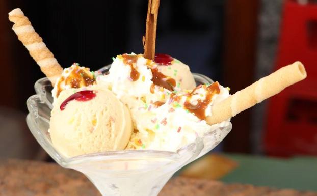 Aunque la especialidad de la casa es el pulpo y la ternera gallega, sus postres son alabados por los comensales. Esta copa de helado de turró con caramelo, barquillos y nata es uno de ellos. Precio 4,90 euros.