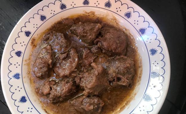 Entre las casetas de esencia tradicional, estas carrileras o carrillá con salsa de almendras esta para mojar pan. El revuelto de bacalao es también digno de mención.