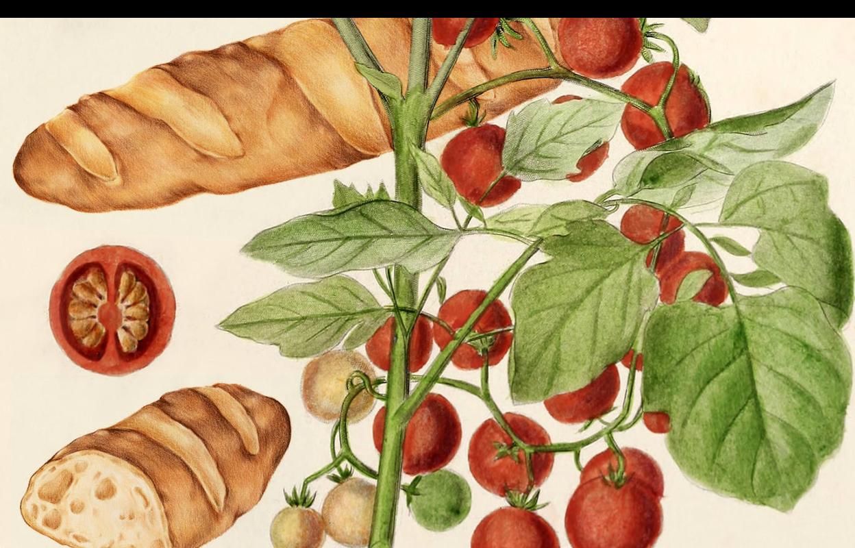Incorporado a la cocina mediterránea en el siglo XVIII, el tomate fue uno de los muchos complementos que los campesinos añadían al pan para adornar su gusto y completar su aporte nutricional. El suplemento más antiguo fue sin duda el aceite de oliva, compañero fiel del pan en toda la cuenca del Mediterráneo desde Andalucía hasta Grecia, pero la tradición gastronómica catalana también nos habla de pan con ajo, con higos o mojado en vino y azúcar.