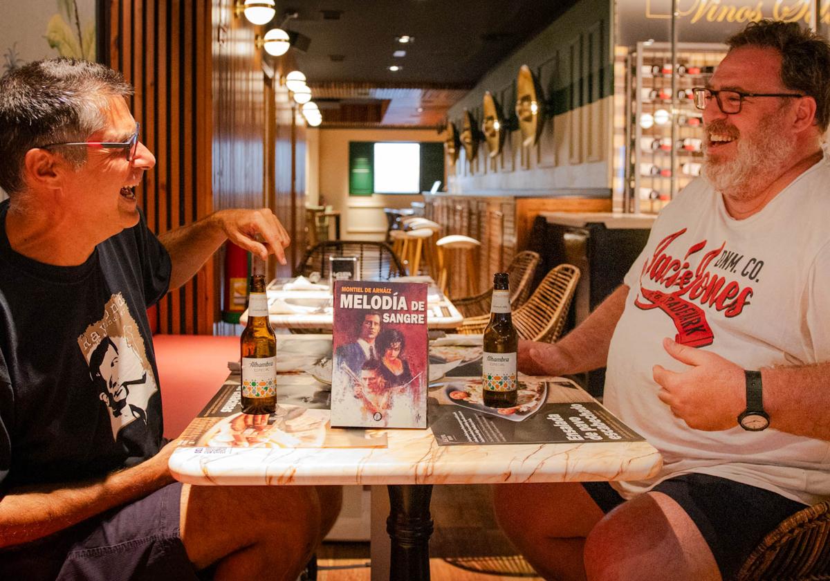 Quedamos en La Cueva de 1900 más reciente, la de Gran Parque Granada, un local extraordinario donde seguir disfrutando de la propuesta gastronómica de la ... popular empresa granadina, de sus chacinas imbatibles a sus sabrosas hamburguesas, como fue el caso. Llegué algo tarde a la cita con Enrique Montiel de Arnáiz y me lo encontré haciendo tiempo justo enfrente, tomándose un helado en Marconata, encantadísimo por el descubrimiento. Acaba de publicar su novela más reciente, 'Melodía de sangre', con una impactante portada pulp.