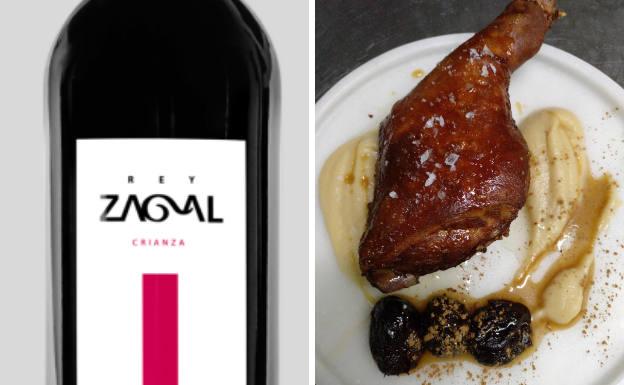En palabras de Jorge Matas, el Rey Zagal Crianza 2011 es un vino muy elegante con aromas a frutos rojos negros acompotados con notas de especias como vainilla y regaliz, notas de tofe que hace que maride con un plato como este, que es contundente, untuoso, meloso y con perfume de especias como la vainilla y la canela. Al cocinero le gusta acompañar al cochinillo con manzana asada y una salsa de miel, vinagre, canela y cáscara de naranja, que le da a la carne un fabuloso toque agridulce.