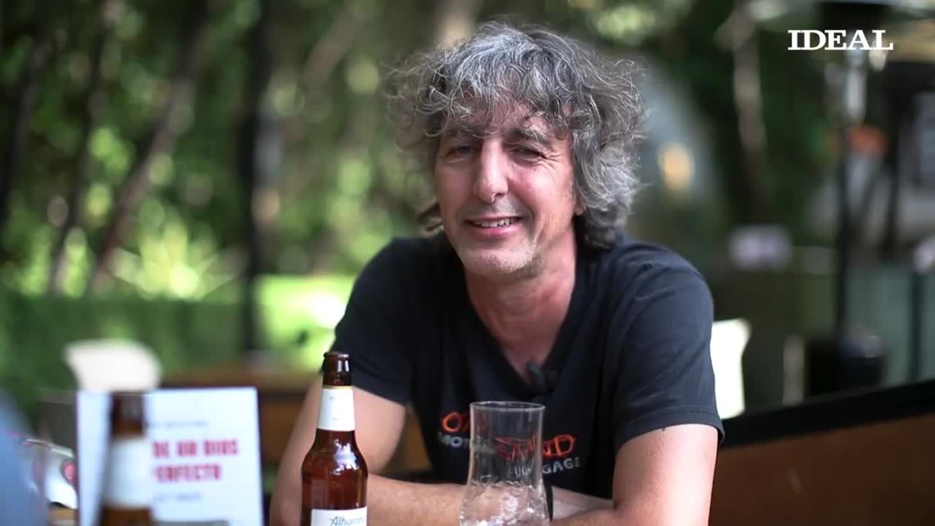 Jesús Lens se toma una cerveza en el Espacio de cervezas Alhambra con el escritor Mario Montoro