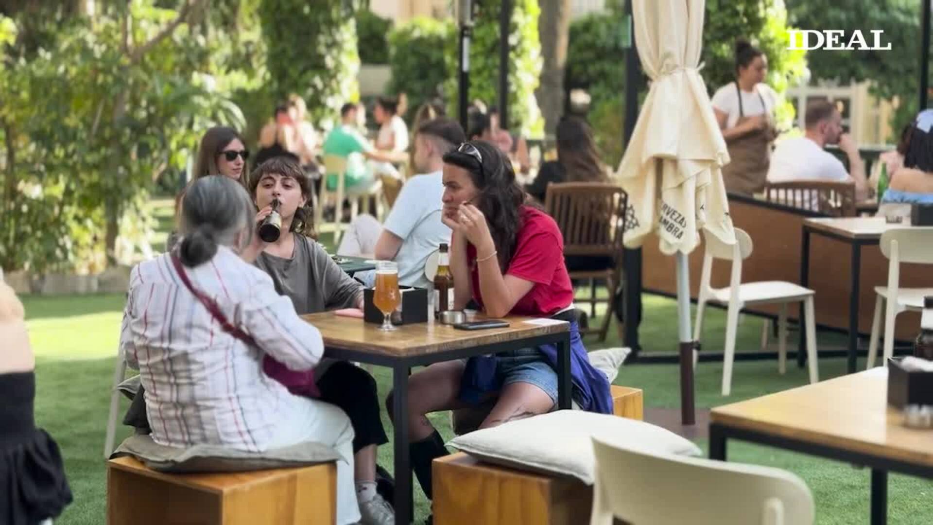 Jesús Lens se toma una cerveza con la beer sommelier de cervezas Alhambra en el espacio de cervezas Alhambra de Granada