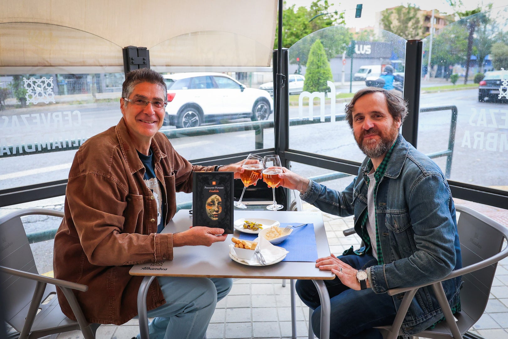 Jesús Lens se toma una cerveza con el escritor y guinista en el bar FM