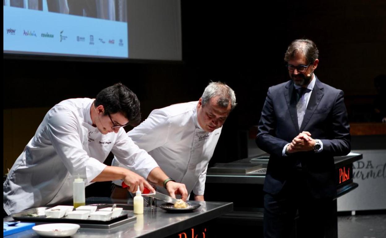 Una oda a la cocina del Norte. Esto es lo que han tratado de hacer esta mañana en el auditorio del Palacio de Congresos de Granada los chefs de El Retiro (1* Michelin) y La Solana (1* Michelin). Ambos han presentado la receta con la que abrirán el menú que servirán, a cuatro manos, este mediodía en el restaurante de Granada Gourmet.