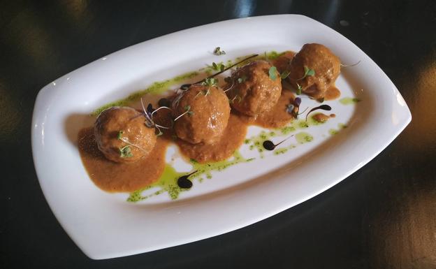 - El Coso: Albóndigas de secreto y jamón en salsa de almendras; tataki de atún con guacamole; pastela moruna con compota de manzana.