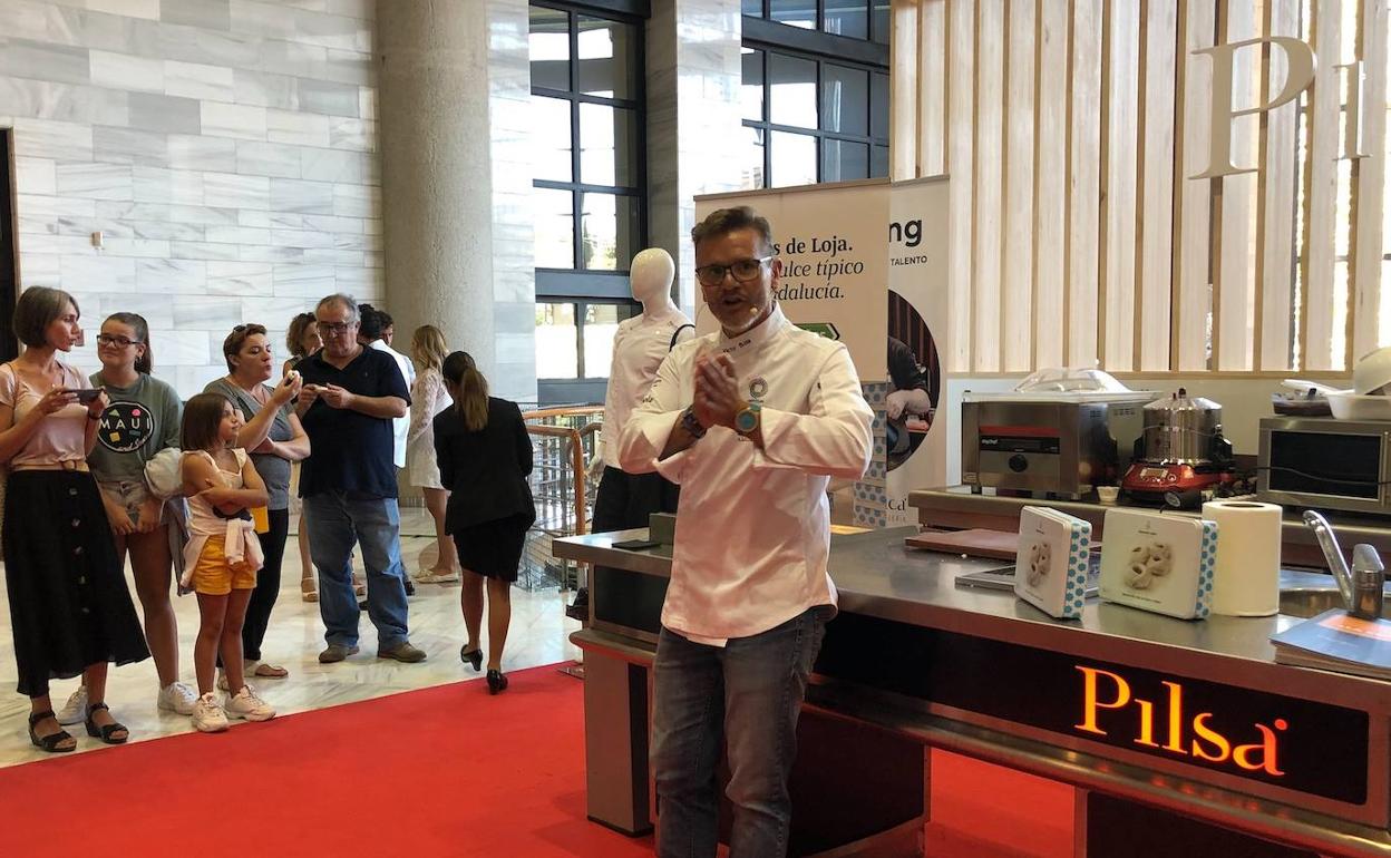 El experto repostero fue el encargado de enseñar y mostrar a los asistentes del taller 'Merengue, bizcocho y crema: elaboración de los Roscos de Loja' cómo preparar esta delicia culinaria.