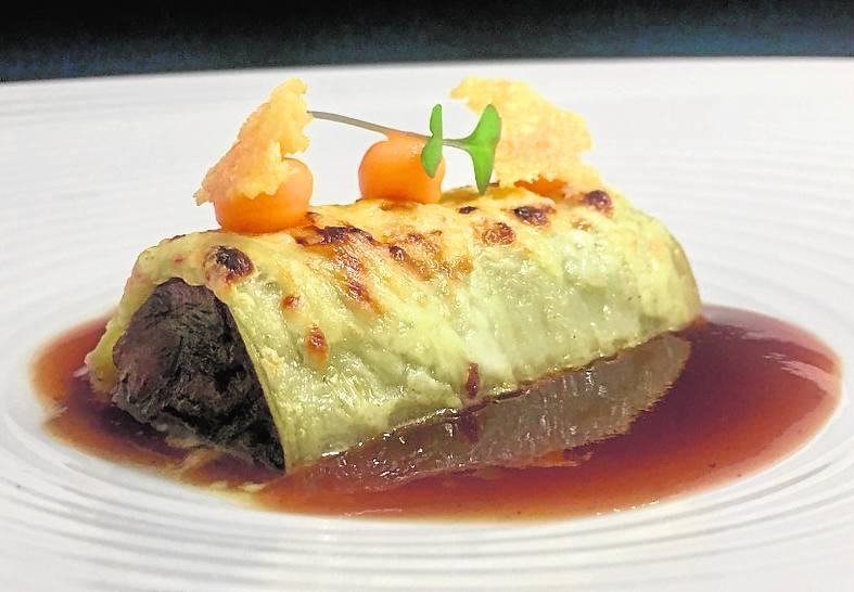 Canelón de carrillera de cerdo estofada al vino oloroso