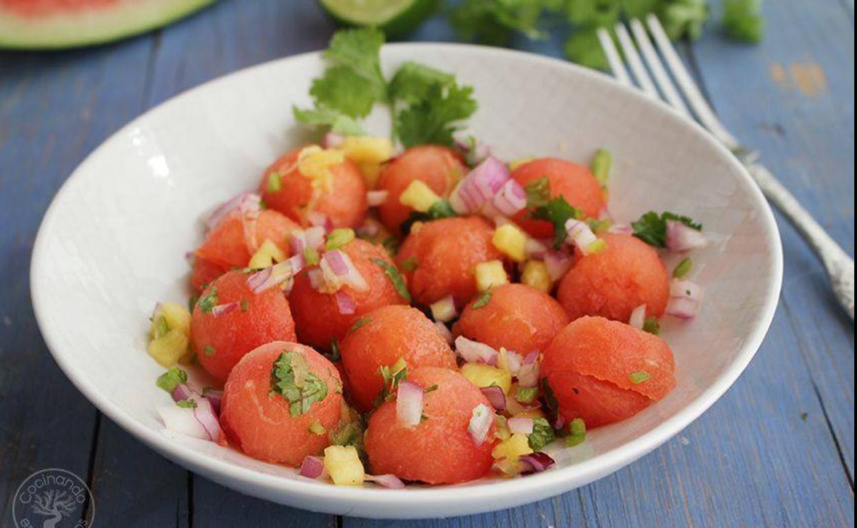 Ensalada de sandía con pico de gallo y AOVE
