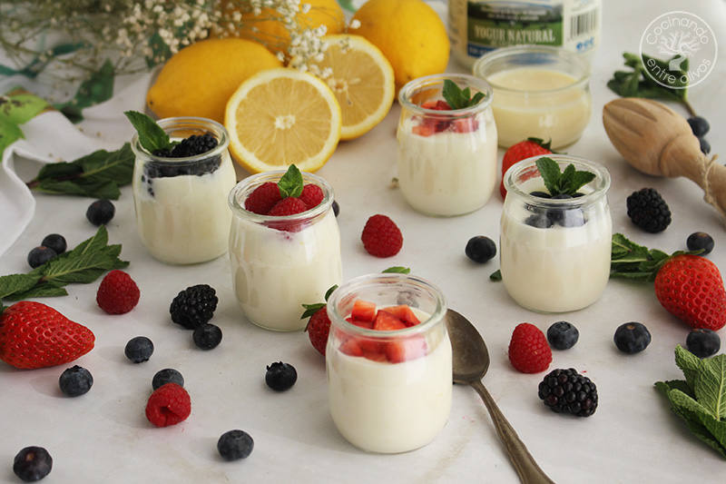 Esta semana os propongo preparar una rica crema de yogur con limón, leche condensada y frutos rojos. Es facilísima de elaborar y más rápida aún ... de hacer. De hecho, en apenas unos minutos podemos hacer un postre delicioso con todo el sabor del limón, al que podéis ponerle fresas o el fruto rojo que más os guste. Para preparar este postre, sano, sabroso y nutritivo, vamos a utilizar un yogur natural que se elabora con leche de vaca de forma artesanal en Granada, de una cremosidad y textura tal que lo hace únicos.