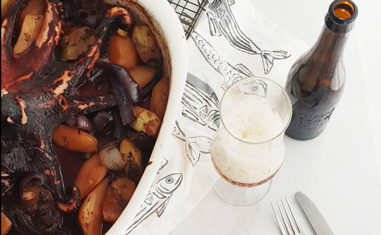 Esta semana os propongo preparar un pulpo asado al horno con cerveza, de origen murciano, pero con productos de aquí. Hemos utilizado la variedad roja ... de Alhambra, que le da un punto estupendo.