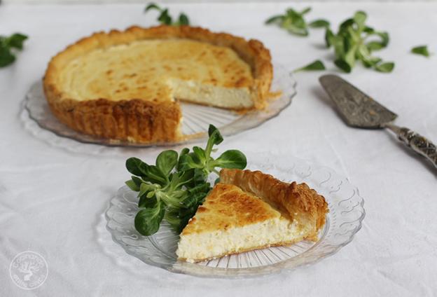 Se trata de una tarta salada con un exterior muy crujiente de hojaldre y un relleno cremoso y suave de requesón y queso con el ... toque de la cebolla que haremos a fuego muy suave, casi caramelizada. Esta tarta de hojaldre se sirve templada y la podéis tomar tanto de segundo plato acompañada de una ensalada verde de brotes tiernos o servirla como aperitivo. También se puede tomar fía. Si tenéis invitados no dudéis en hacerla, seguro que triunfa.