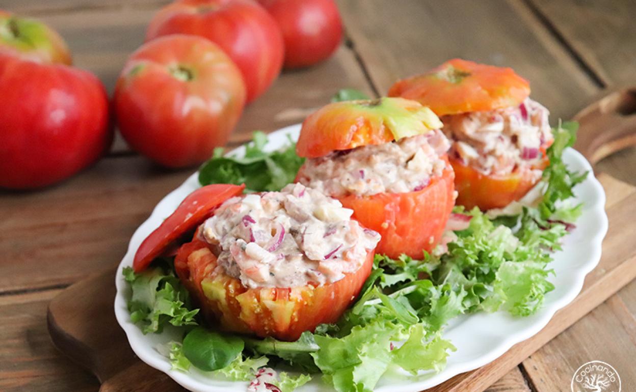Rellenamos los tomates con esta mezcla y servimos sobre una cama de lechuga.