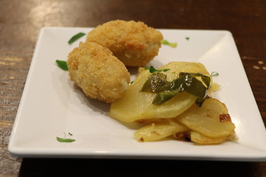 Aunque no son la especialidad, la variedad de croquetas elaboradas por sus cocineros, son conocidas en el barrio. De salmón, jamón asado, bacalao, cocido o rabo de toro son algunas de ellas. Precio de la tapa incluido en la consumición.