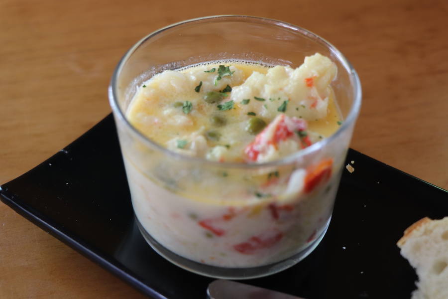 A partir de bacalao desmigado, un sofrito de cebolla, ajo y pimiento rojo, un poco de nata y guisantes se prepara la brandada que elaboran en esta típica esquina de Pedro Antonio. Precio del plato incluido en la consumición.