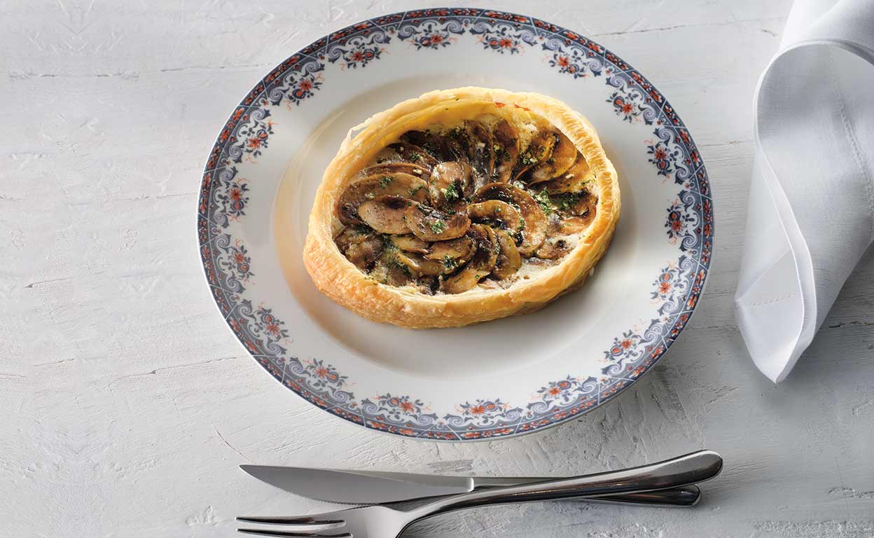 Con boletus edulis esta tarta queda superior y, añadiendo una pizca de pimentón de la Vera a la persillada, el resultado es muy jugón.